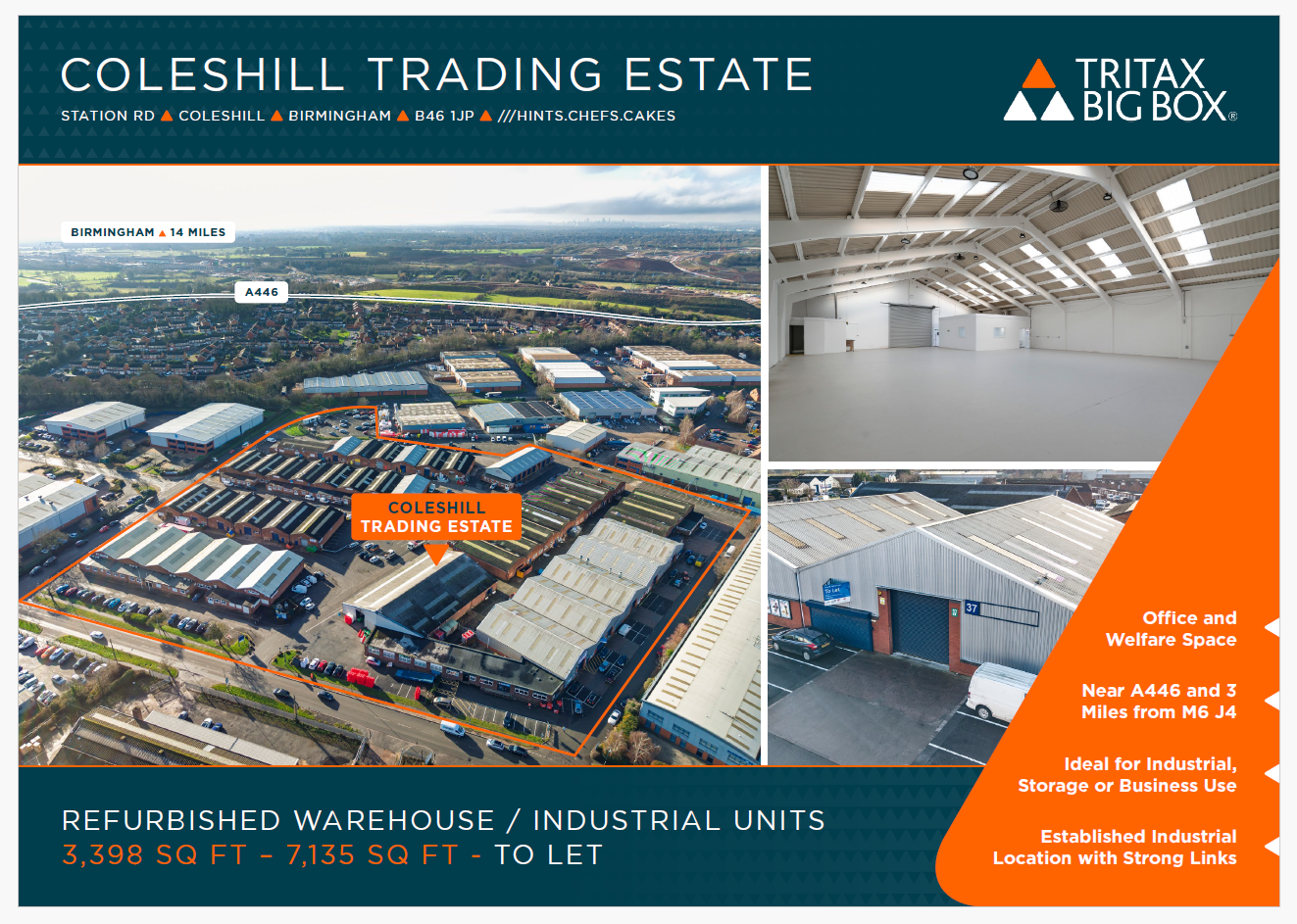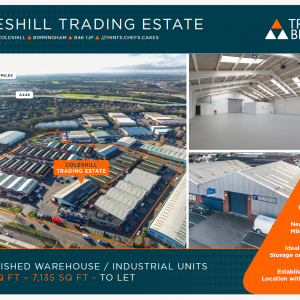 Coleshill Trading Estate is a long established and well known estate with units starting at 3,400 sq.ft (316 sq.m) which, subject to availability, can be combined to create larger premises. The estate enjoys prominent frontage to Station Road and Roman Way.