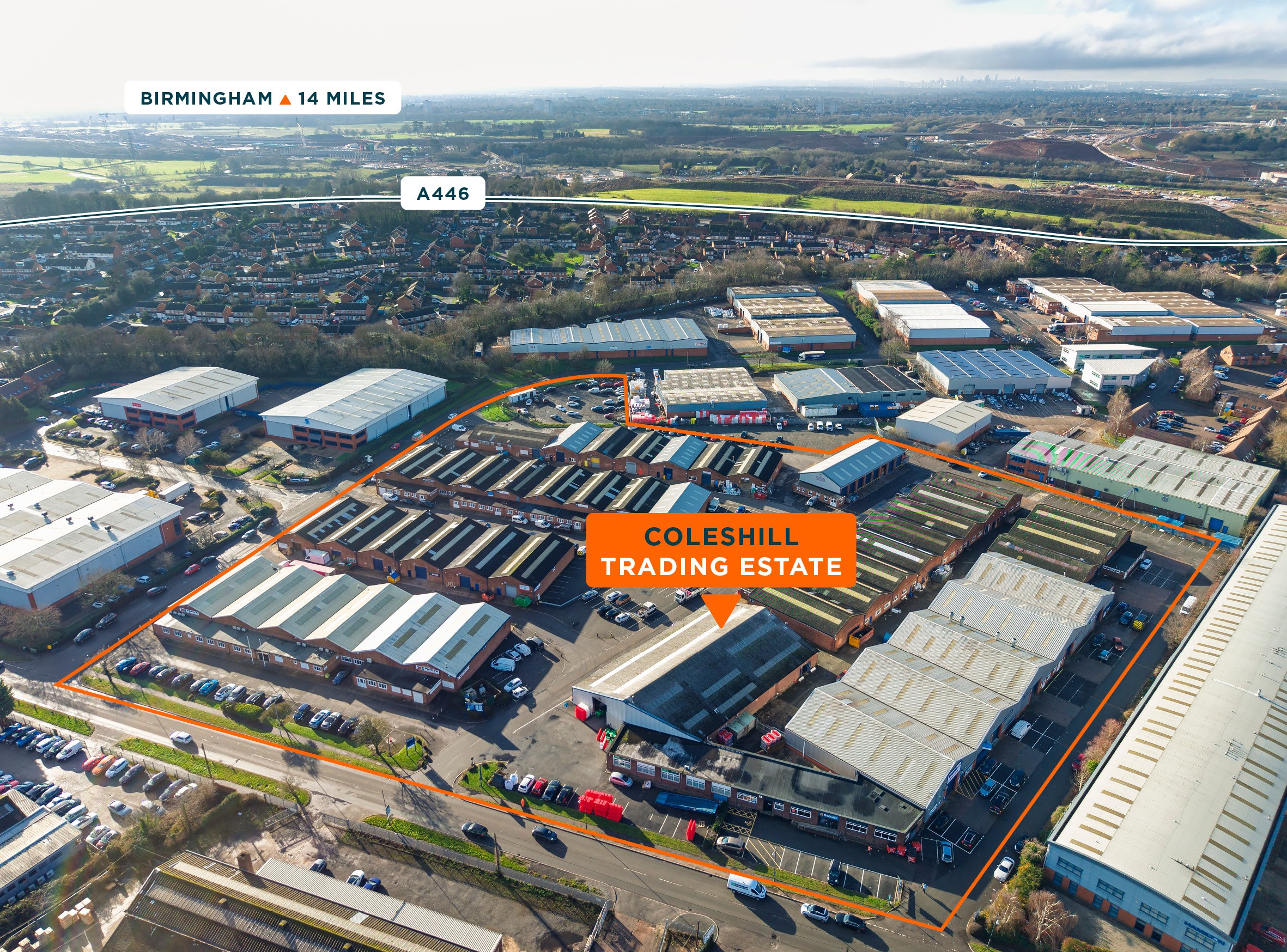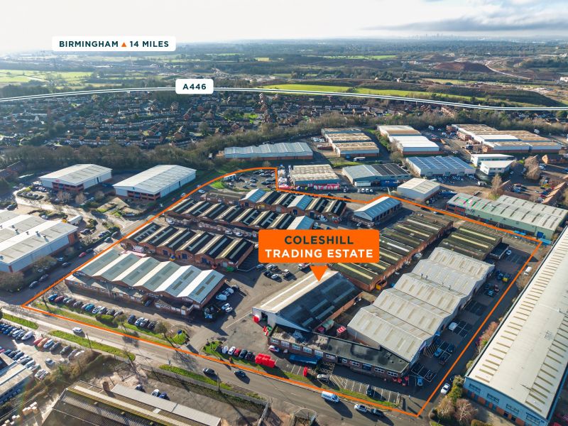 Coleshill Trading Estate is well situated adjacent to the main A446 dual carriageway and within 3 miles of J4 of the M6 and 2 miles from J9 of the M42 and J1 of the M6 Toll. Easy access is therefore also gained to the M1, M5 and M40 motorways. The National Exhibition Centre, Birmingham International Airport, Birmingham International Railway Station and Coleshill Railway Station are all within a few minutes' drive.