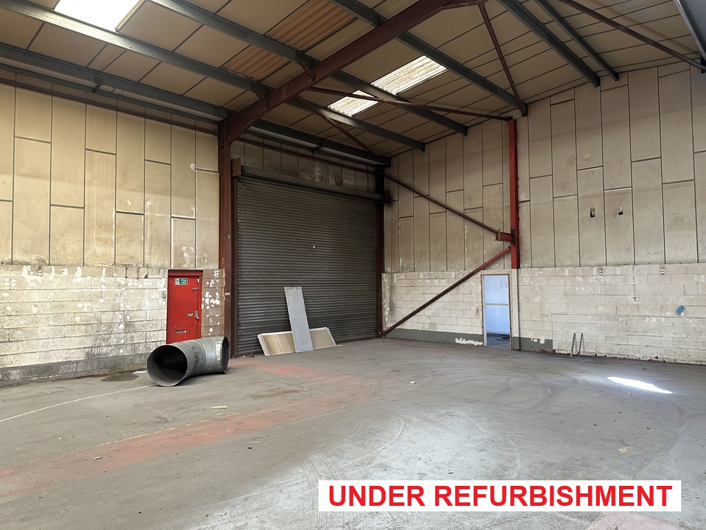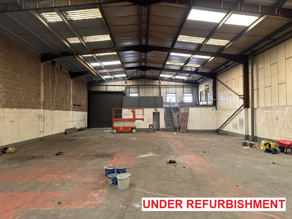 The warehouse has a clear internal height of 5.22m, with minimum eaves height of 5.81m, and benefits from access via two large electrically operated level access loading doors (front - 4m x 4.3m, side - 5.44m x 4.28m). As part of the refurbishment new LED high bay warehouse lighting will be installed. A mezzanine floor above the offices provides additional light storage space but could easily be converted to provide additional office accommodation if required. As part of the refurbishment all walls will be painted as well as the warehouse floor.
