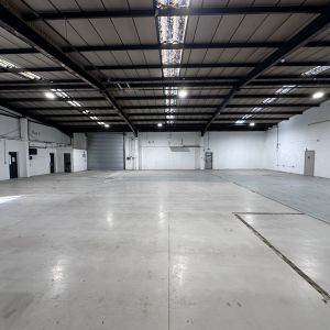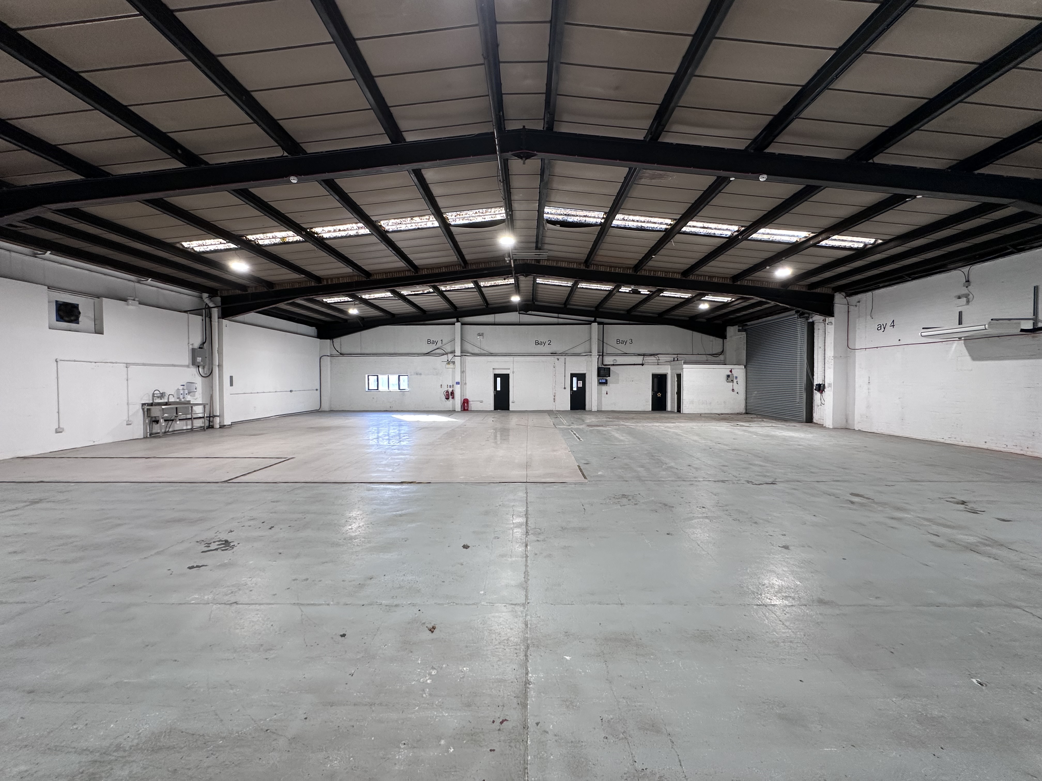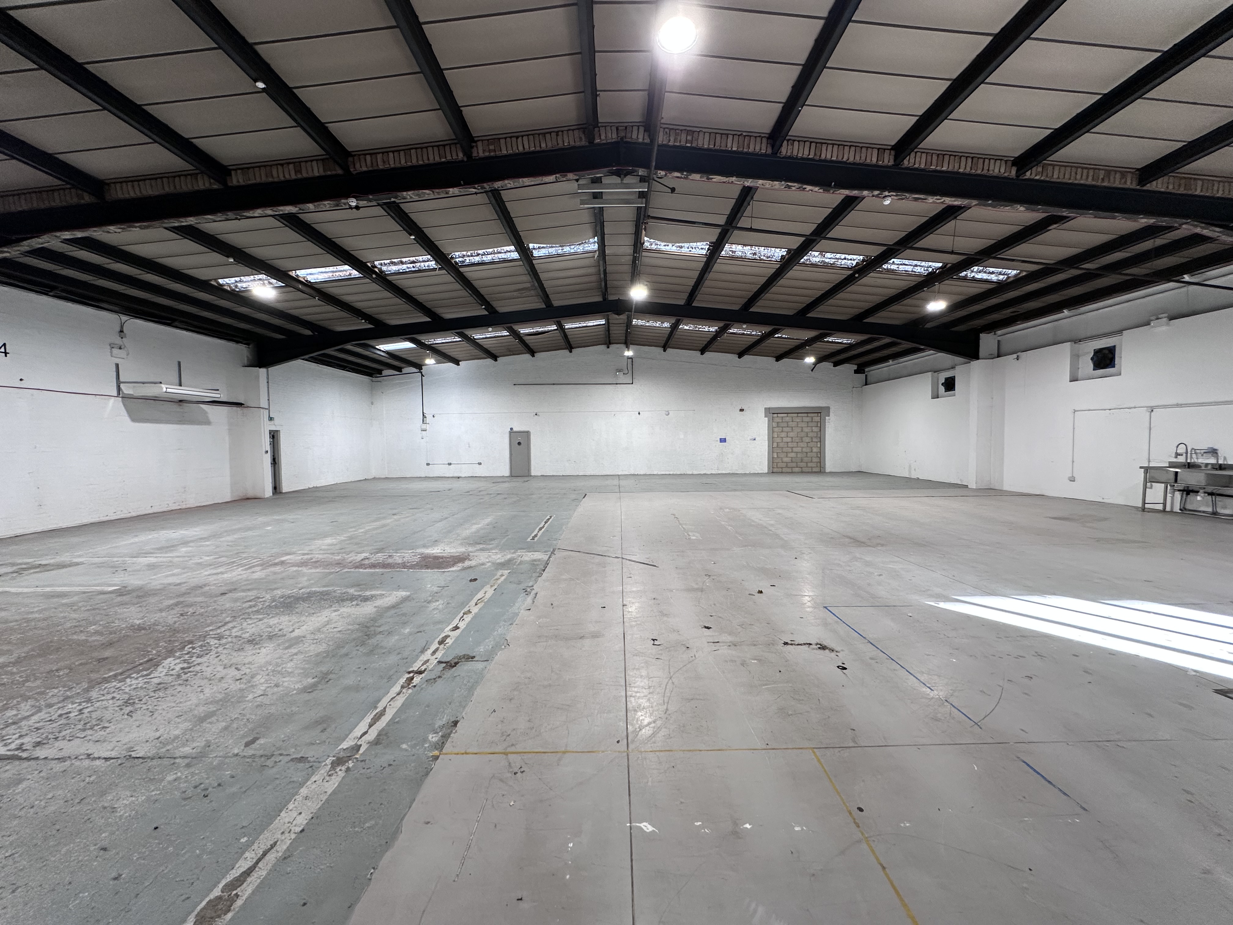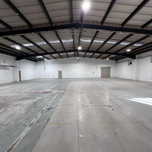 The warehouse benefits from concrete flooring, level loading roller shutter access, LED lighting, and 3-phase electricity.