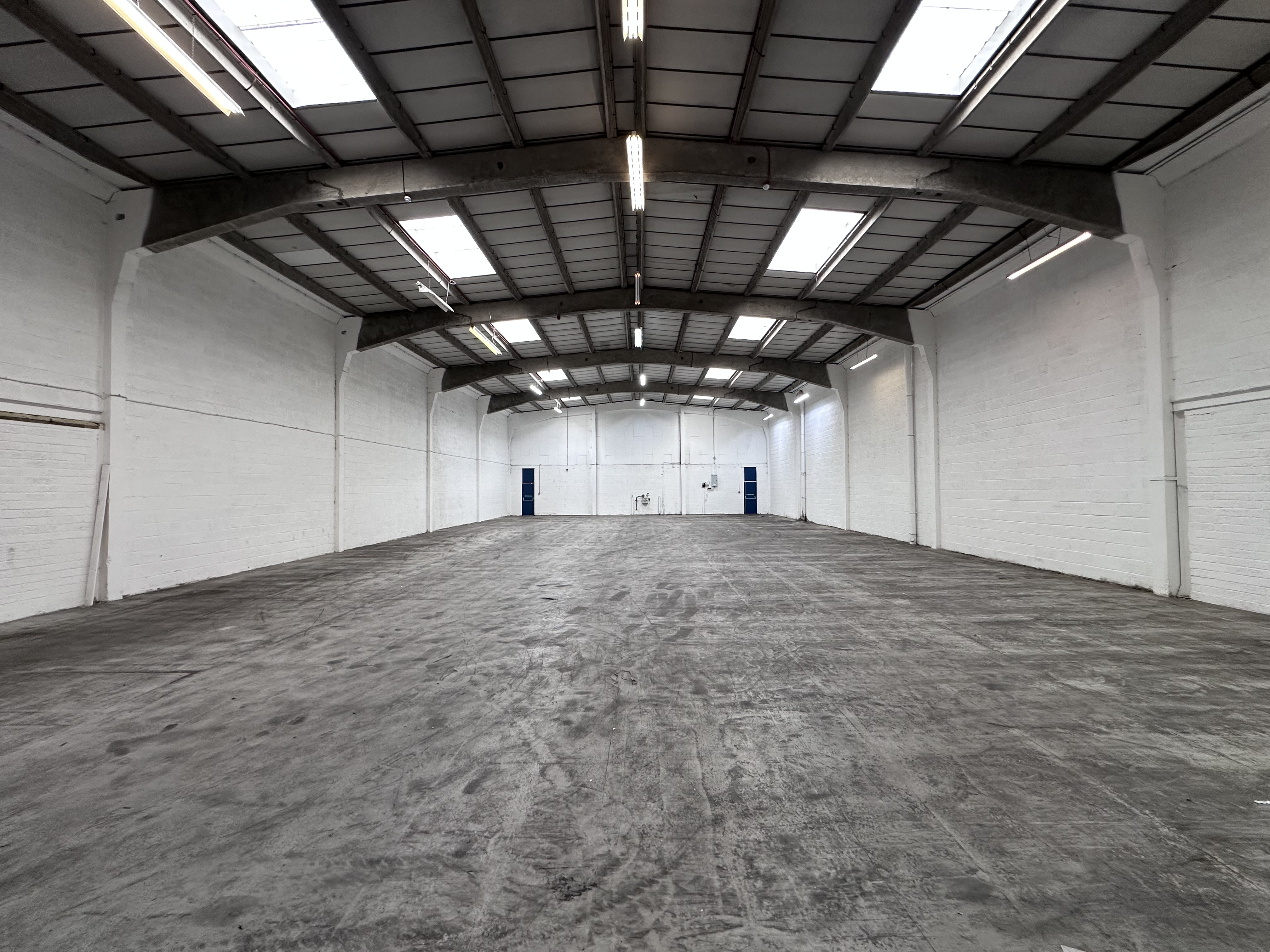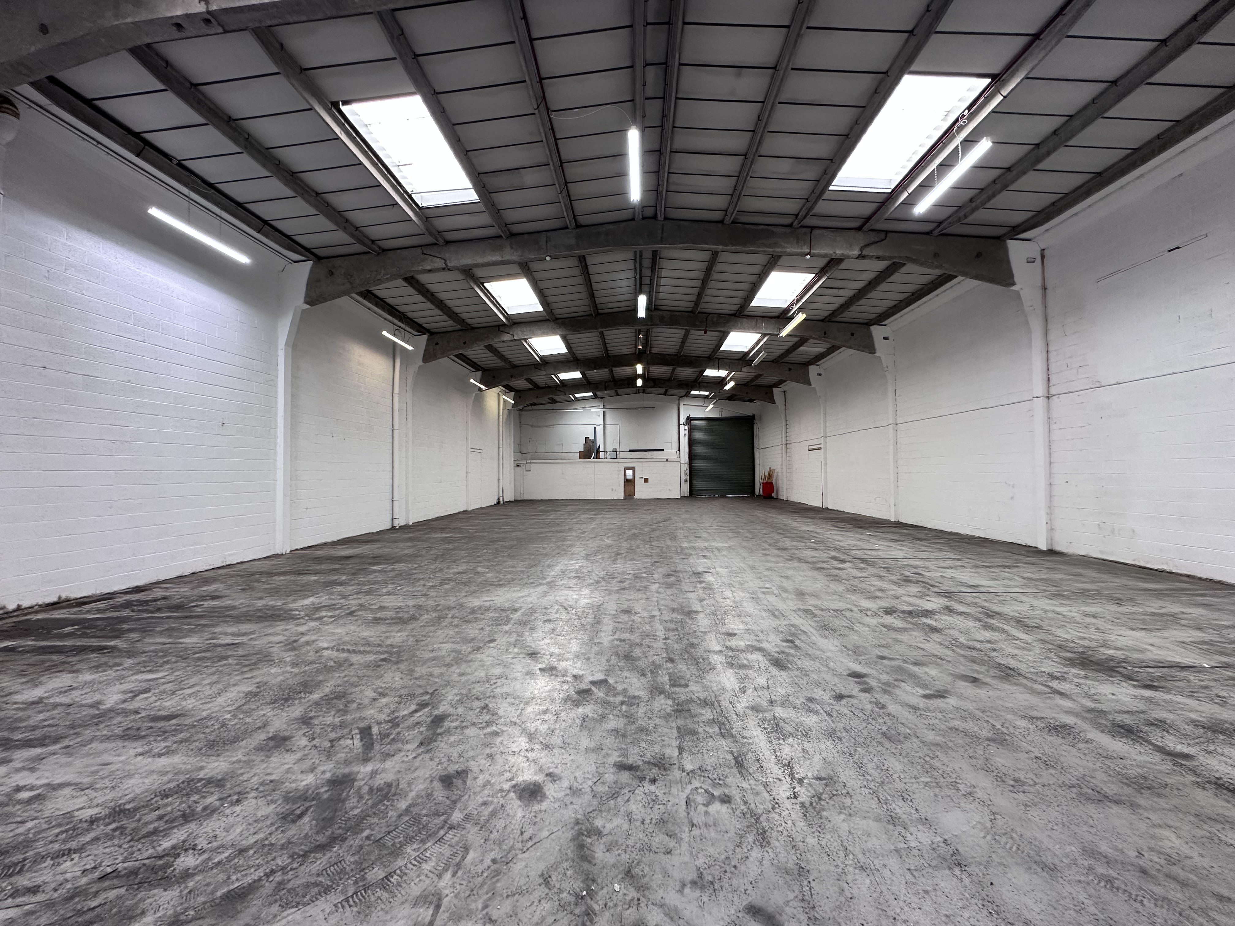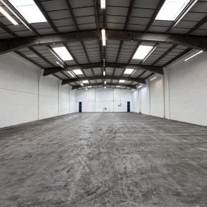 - Mid terrace concrete portal framed industrial warehouse distribution unit.